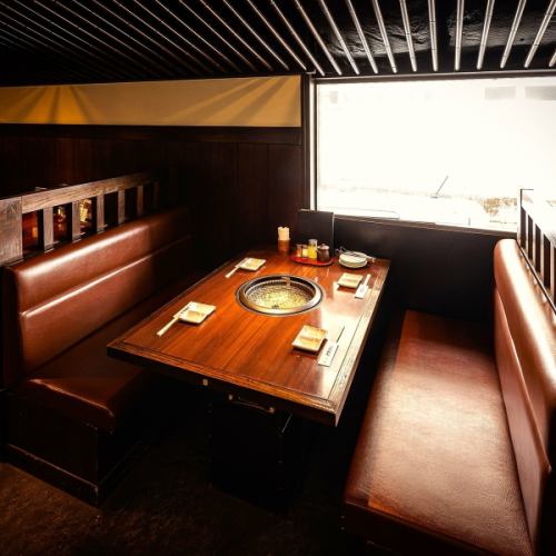 【靠窗包廂座位】在我們的靠窗包廂座位上,您可以享受開闊的視野。因為它是沙發式的,即使長時間坐著也很舒適。這些肉類均由專業人士精心挑選,品質絕對優良。您一定會滿意的!想在北仙台吃烤肉,就去大黑烤肉店!